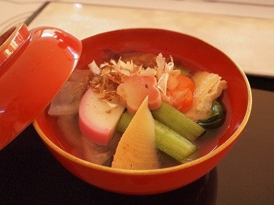 元旦は恒例のお正月テーブルですが、今年は具だくさんのお雑煮にしてみました!