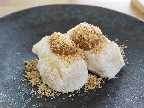胡麻豆腐に片栗粉をつけて焼きます