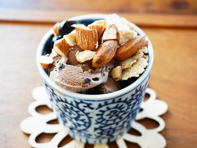 2.玄米フレーク→コーヒーゼリー→チョコアイス→アーモンド