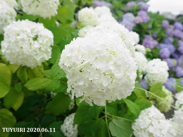 丁度、雨が降り出す前に買い物に出たので、近くのアジサイを