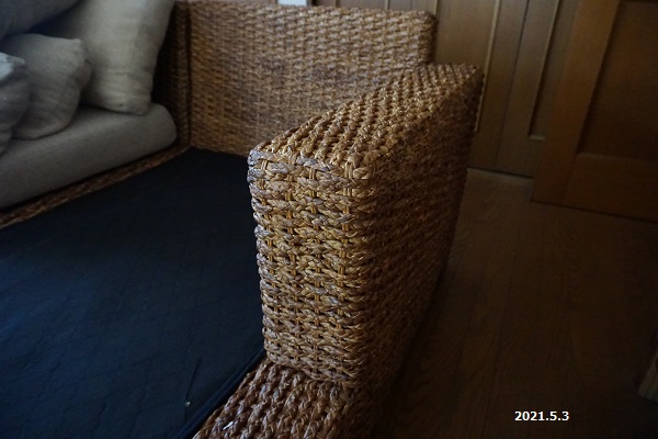 上の写真はウォーターヒヤシンスという水草を使ったアジアン家具なのですが、掃除機があたったり、物をぶつけたりで痛んできました