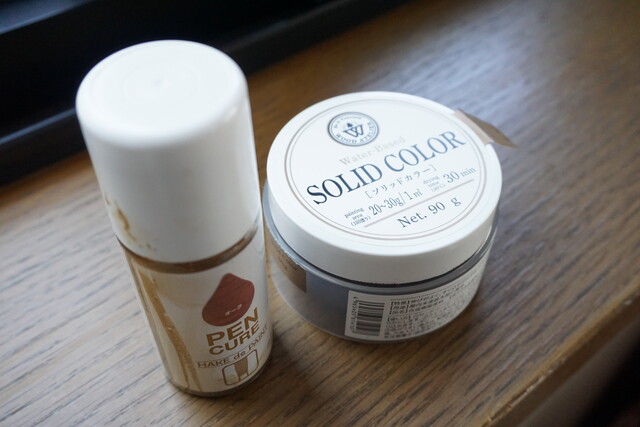塗りやすいのは刷毛が付いたPENタイプですが、スポンジでちょこちょこ押さえて塗るSOLID COLORも馴染みが良くて違和感なく仕上がりました!