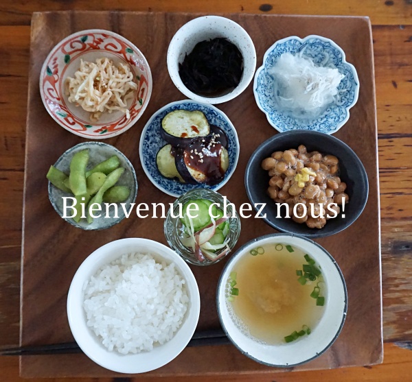 焼きナス味噌・納豆・きゅうりの酢の物