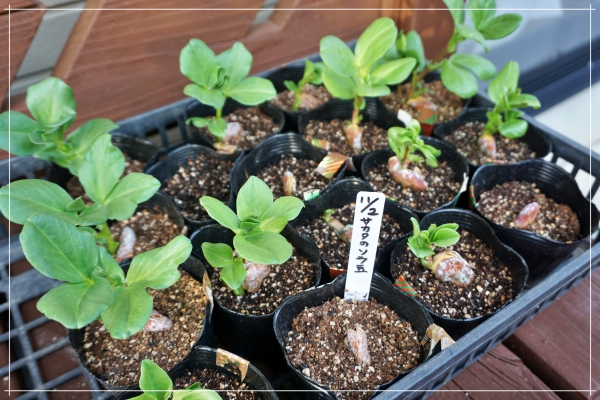 そら豆は一つ鳥に食べられたのか、種が見当たりません!