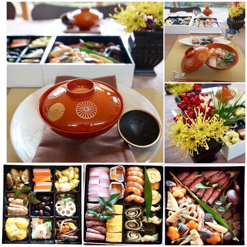 31日田作り、伊達巻、昆布巻き、鯛の混布〆、牡蠣の佃煮・海老の甘煮・カリフラワーのピクルス、栗きんとん、八幡まきなど